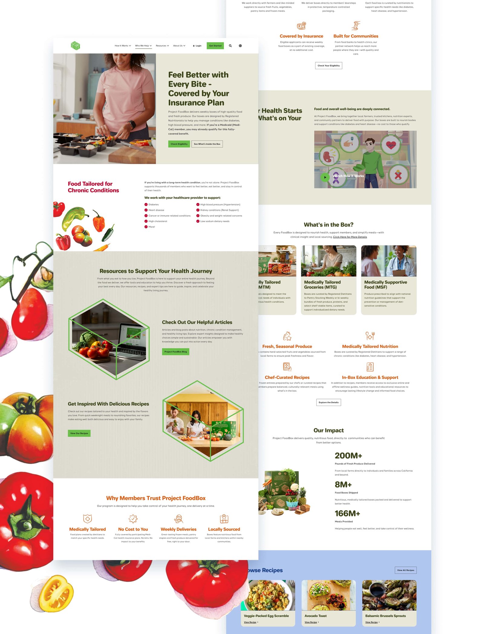 Project FoodBox delivers medically tailored nutrition to individuals, managed care providers, and community organizations across California. Their work sits at the intersection of healthcare and food access, and their digital presence needed to serve multiple audiences at once. We built a custom HubSpot CMS website alongside a purpose-built members portal, giving them one cohesive system for both public-facing outreach and behind-the-scenes program management.